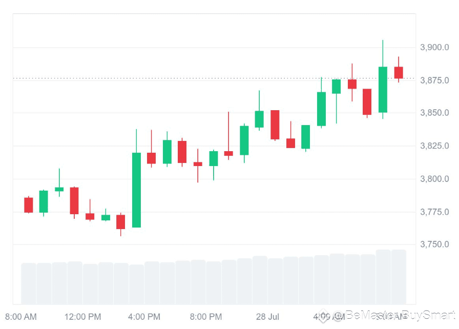 As a result, Ethereum continues to show resilience amid broader market volatility. The second-largest crypto is up 3% on Monday, trading at $3,876 during press time. According to CoinMarketCap, the surge reflects bullish technicals, institutional accumulation, and staking dynamics.
