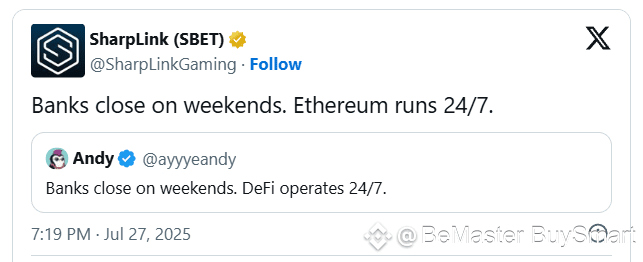 SharpLink plans to deposit the ETH into staking, on-chain analyst EmberCN noted. The company said Sunday that banks close on weekends, while Ethereum runs 24/7, touting the upcoming big ETH buy.