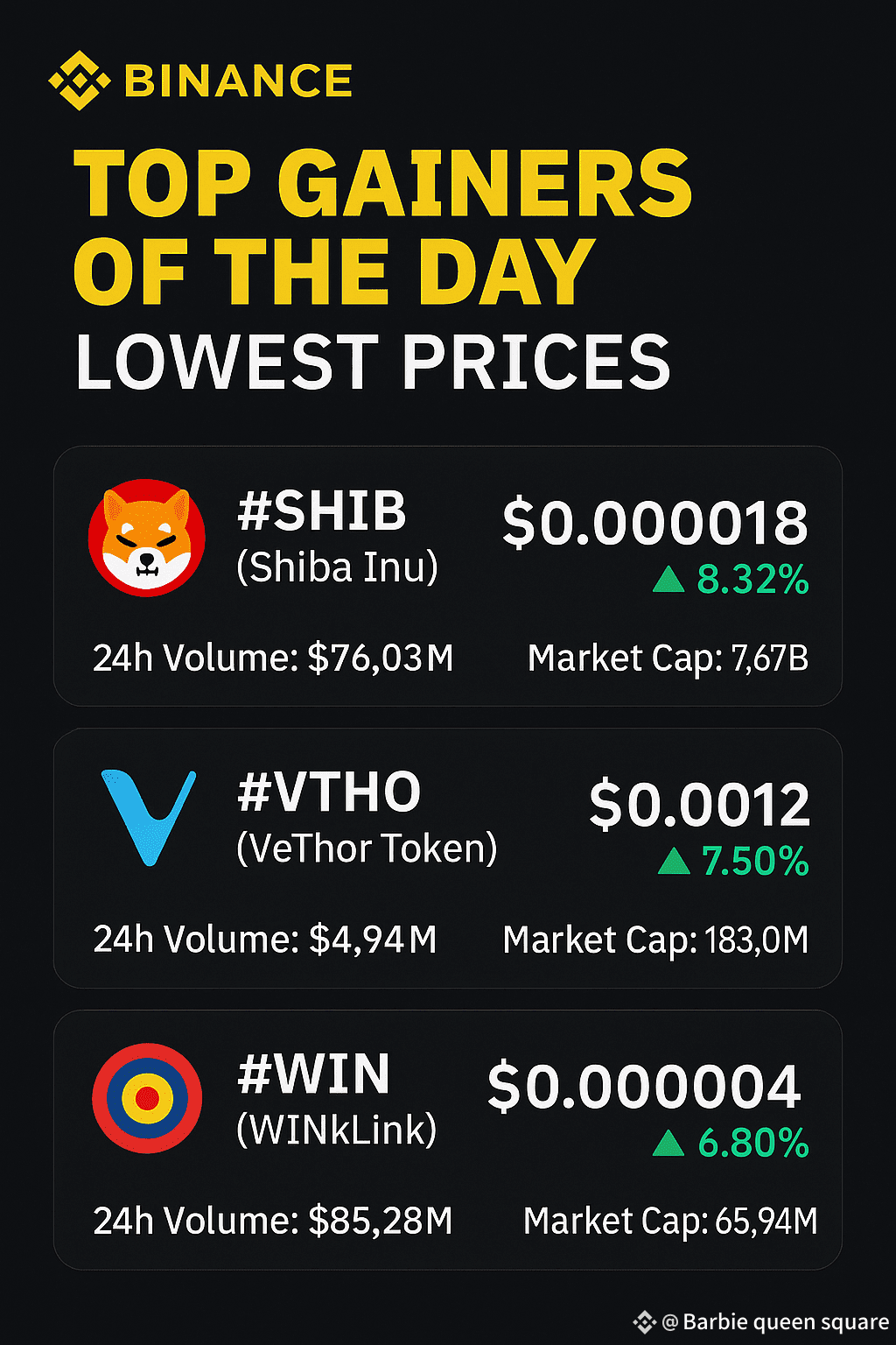 Looking for low‑price altcoins that delivered gains today while still letting you enter cheap? Here are the three lowest‑priced coins with strong performance, live market data, and volume/market‑cap insights. Perfect for traders watching budget plays! 🎯👇