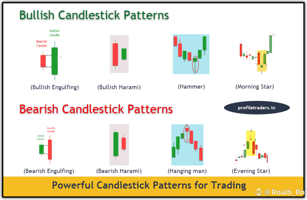 📌 Morning Star – A 3-candle setup that starts with a red candle, followed by indecision, then a strong green candle.