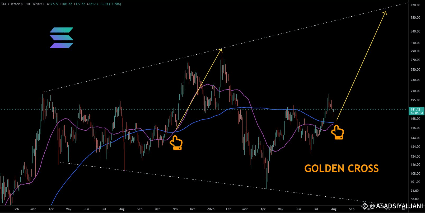 A golden cross has just appeared on $SOL chart—a strong bullish indicator!