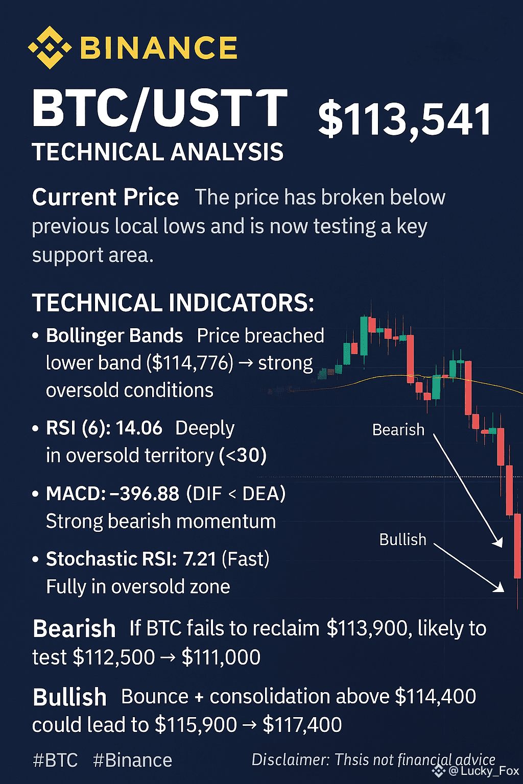 If BTC fails to reclaim $113,900, it will likely test $112,500 or even drop to $111,000–$110,000.