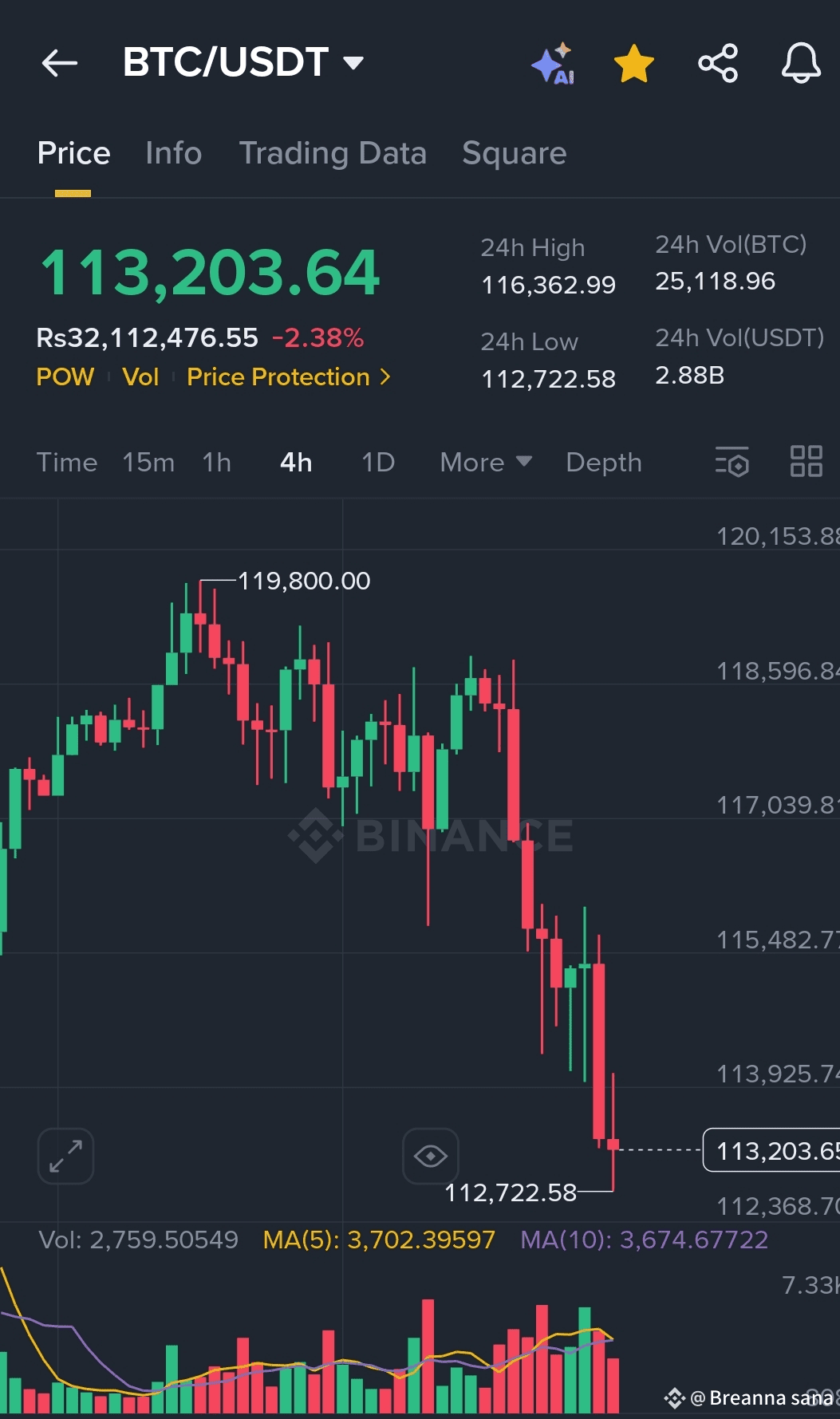 Price struggling to hold $113.2K — risk of slipping below $112.7K again