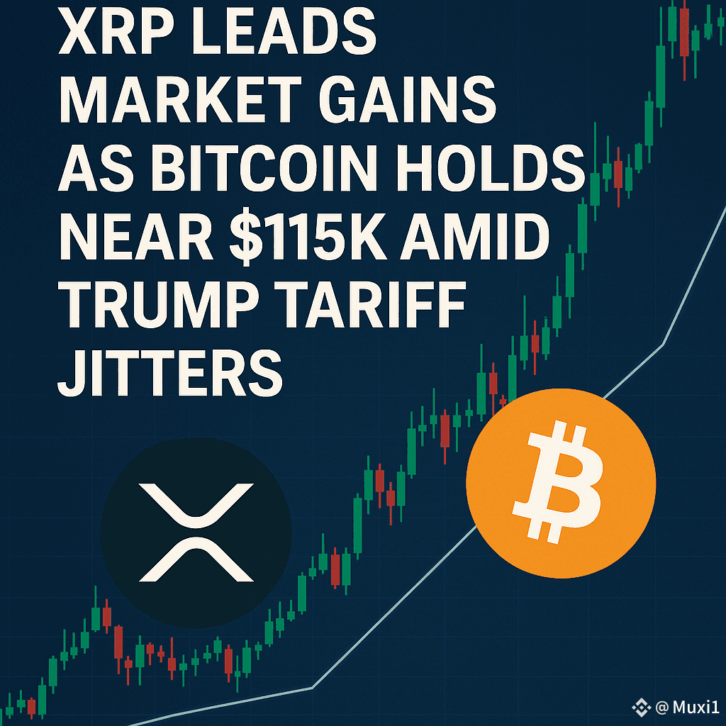 XRP #Xrp🔥🔥 stole the spotlight today with a solid 5% surge, outpacing the broader crypto market, while Bitcoin held steady around $114,500 after a weekend selloff.