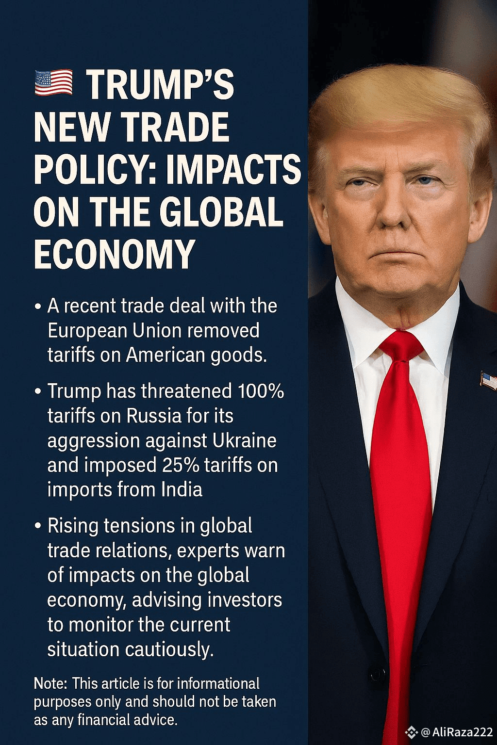 صدر ٹرمپ کی ان پالیسیوں سے عالمی تجارتی تعلقات میں تناؤ بڑھ رہا ہے، اور ماہرین کا کہنا ہے کہ یہ اقدامات عالمی معیشت پر گہرے اثرات ڈال سکتے ہیں۔ سرمایہ کاروں کو مشورہ دیا جاتا ہے کہ وہ موجودہ صورتحال پر گہری نظر رکھیں اور اپنے سرمایہ کاری کے فیصلے احتیاط سے کر
