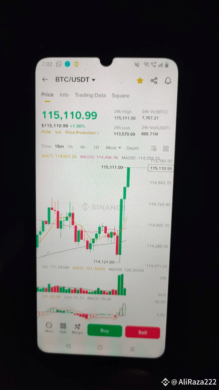 $BTC (BTC/USDT) has just broken out of consolidation with a strong bullish candle on the 15-minute chart, touching 115,110 — a key resistance level now flipped into potential support.