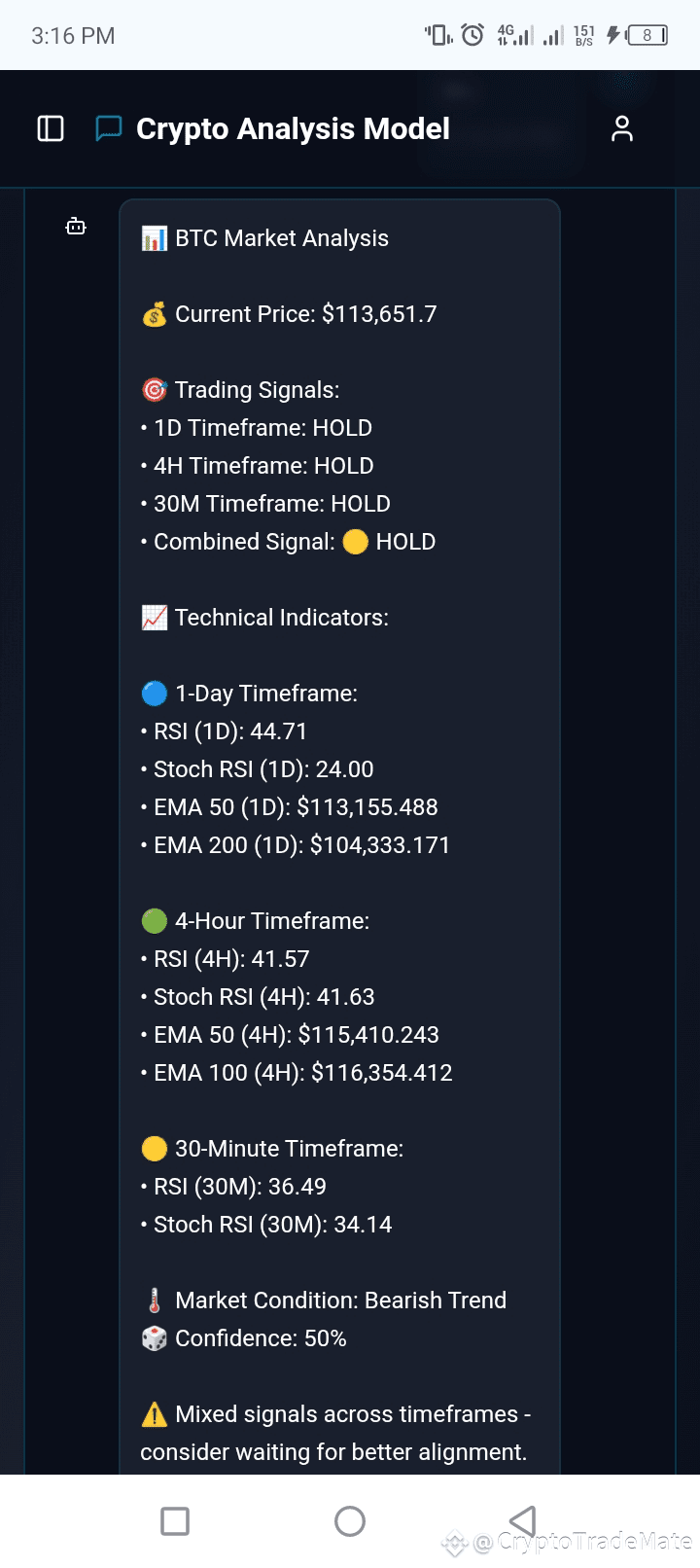 Fellow traders, let's conduct a detailed breakdown of Bitcoin's current market status. As of the latest snapshot, BTC's price stands at $113,651.7. Our Crypto Analysis Model has a clear message for us today: exercise caution.