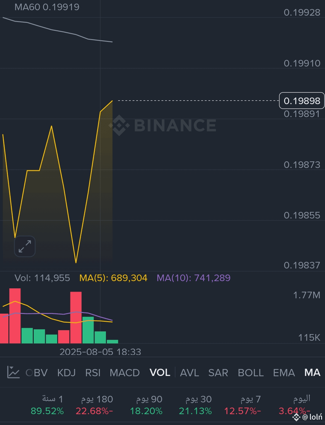 السبب: نموذج شمعة pin-bar صاعد على الدعم الأفقي اليومي مع ارتفاع ملحوظ في أحجام الشراء من المحافظ الذكية (مؤكد عبر سكربت أحجام Binance).