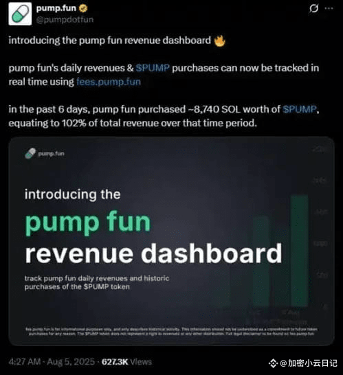 而在8月初,Pump.fun官方突然发力,宣布了$PUMP的回购计划。