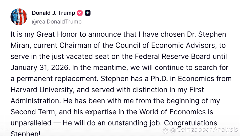 #StephenMiran #FederalReserv #TrumpNominee #CryptoMarketBoost #USPolitics