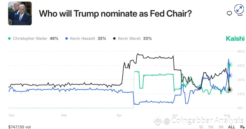 Top guesses include Christopher Waller, a conservative Federal to be next Fed Chairman. According to the prediction market and Kalshi reports Waller’s chance has exceeded 46% previous front-runners Kevin Warsh and current National Economic Council Director Kevin Hassett, whose odds stand at 20% and 35%, respectively.
