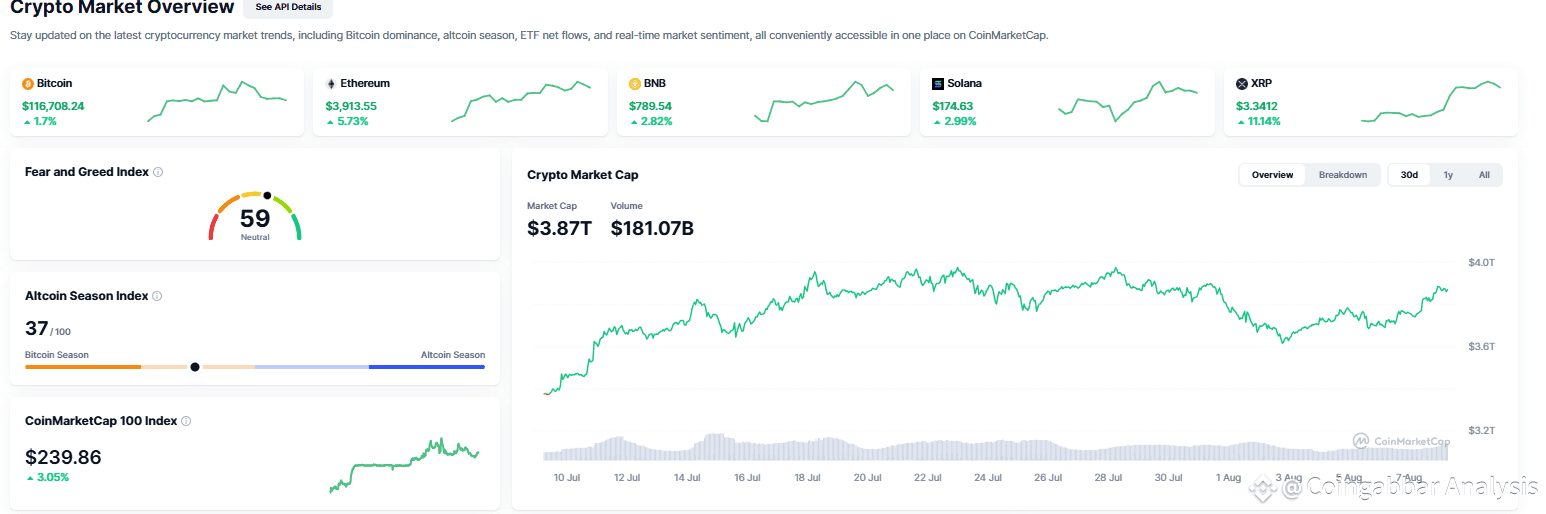 The global cryptocurrency market cap stands at $3.87 trillion, marking a 2.8% increase in 24 hours. Total trading volume hit $181B. Bitcoin, Ethereum, BNB, Solana, XRP all the major crypto currencies have gained momentum with this Fed Governor news of Stephen Miran federal reserve nominee. The Crypto Market is very volatile and reacts very sharply with the President's tiny movements.