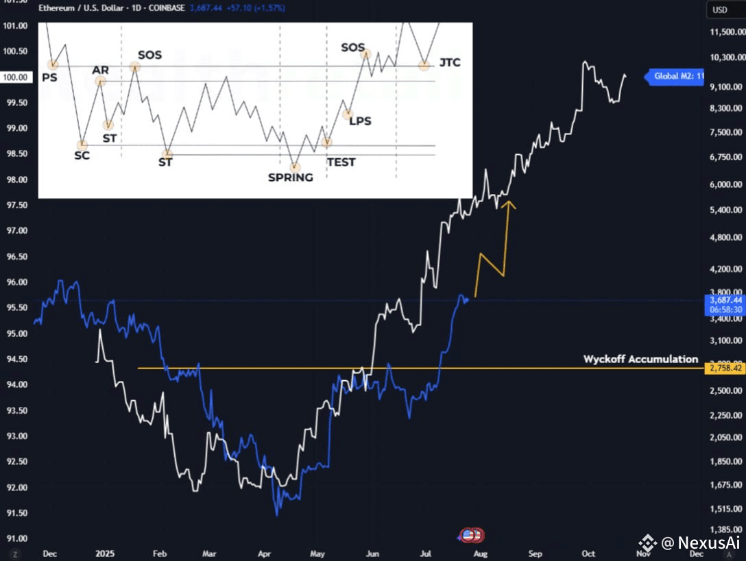 📈🪙 $ETH is catching up with Global Liquidity (M2) — and the chart doesn't lie.