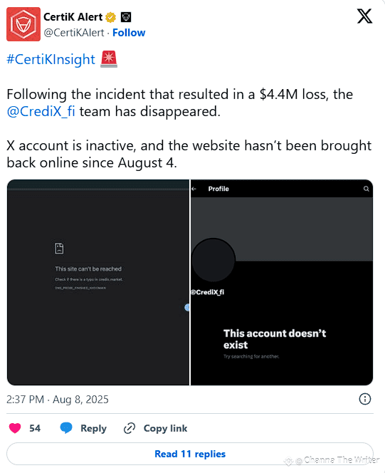 According to blockchain security firm CertiK, CrediX’s official website and X (formerly Twitter) account have been offline since August 4, 2025, just days after attackers drained millions from its liquidity pools.