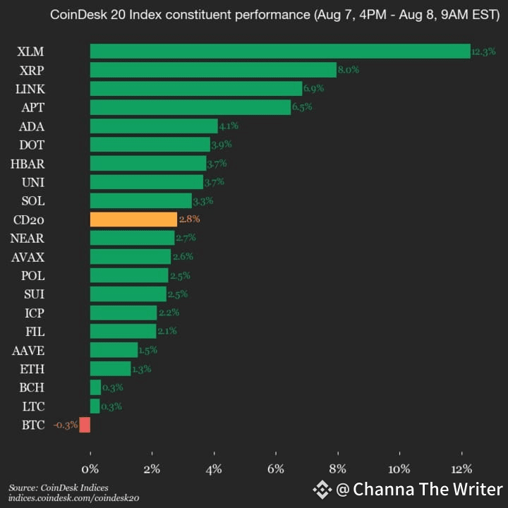 Leaders: XLM (+12.3%), XRP (+8.0%)