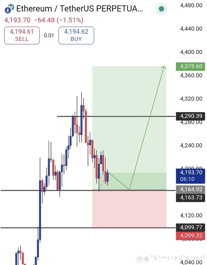 Ethereum is currently holding a critical support level around $4,165. If this area holds, there’s potential for a bullish bounce toward the $4,290 and $4,375 zones. However, a drop below $4,099 would signal weakness and may open the door to further downside.