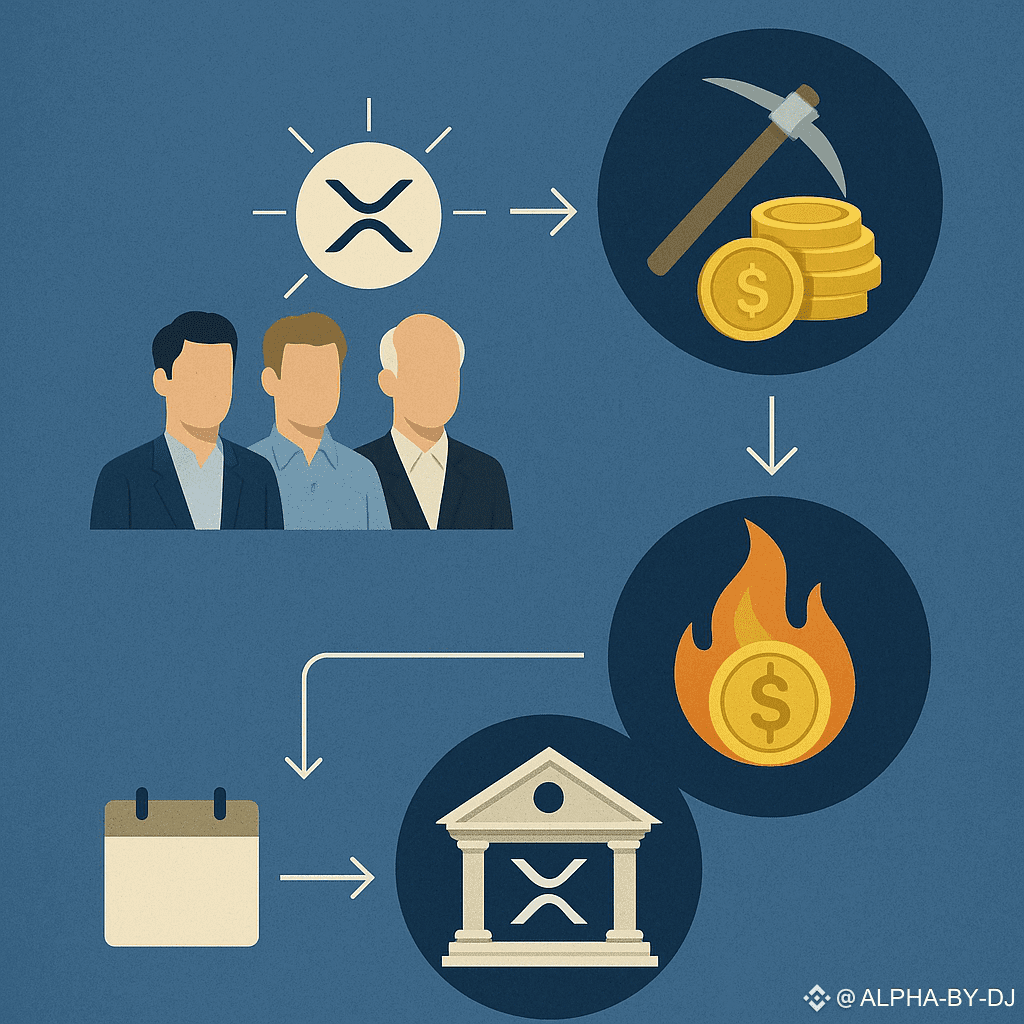 100 مليار XRP وُلدت دفعة واحدة، جزء منها بقي في خزائن شركة Ripple، والآخر توزّع على السوق.