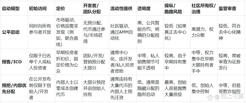 Memecoin市场是加密货币生态系统中一个高度动态且快速发展的领域,其特点是启动机制和治理模式的持续创新。 去中心化和公平性理想与确保初始资金和长期可持续性的实际需求之间固有的张力,可能会推动未来更复杂混合模型的发展。
