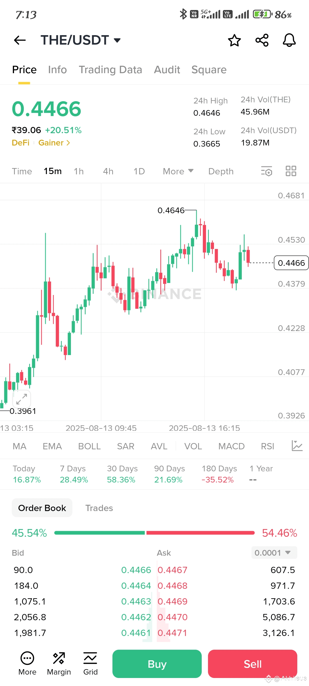 $THE is currently trading at $0.4535, up 0.6% from just an hour ago and an impressive 21.74% surge since yesterday! Over the past 7 days, $THE has gained a solid 27.0%, showcasing strong upward momentum.