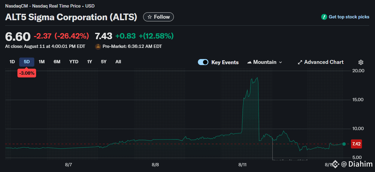 ALT5 Sigma’s stock was riding high before the announcement, nearing $20 in pre-market trading, more than doubling its value, per data from Yahoo Finance. But once the news hit, the momentum flipped fast as the shares tumbled, wiping out all those early gains and sliding 26.42% to $6.60 by the time the market closed on Monday.