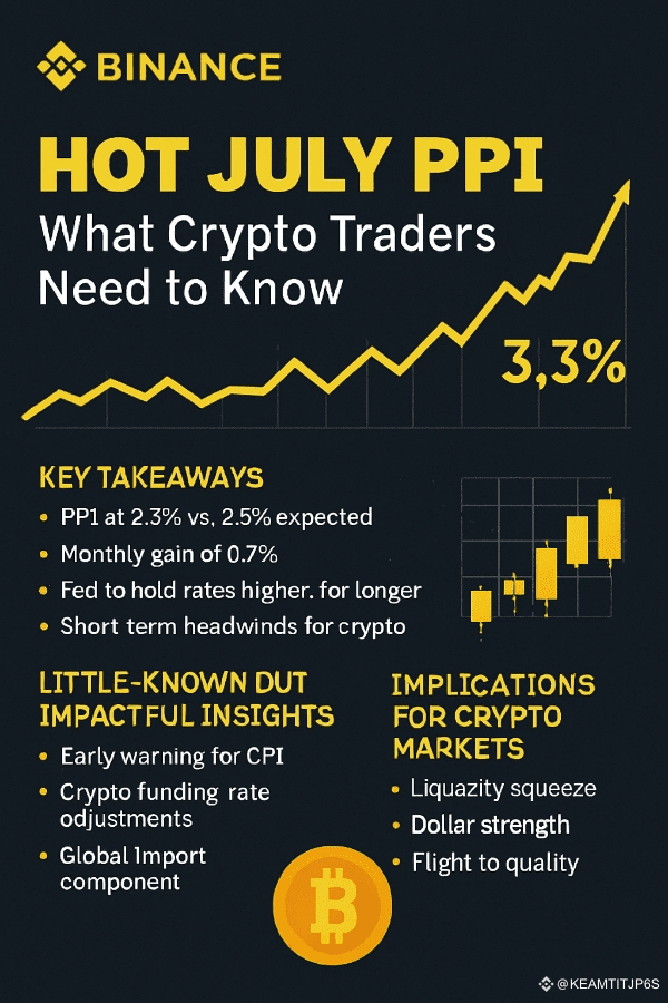 July’s PPI surge reminds us that inflation doesn’t just live in consumer receipts—it starts in the factories, service sectors, and tariff filings. Crypto traders who spot these upstream signals early can navigate the storm with more confidence. Keep your risk models tight and your eyes on producer costs—they might just forecast the next big leg in digital assetss.