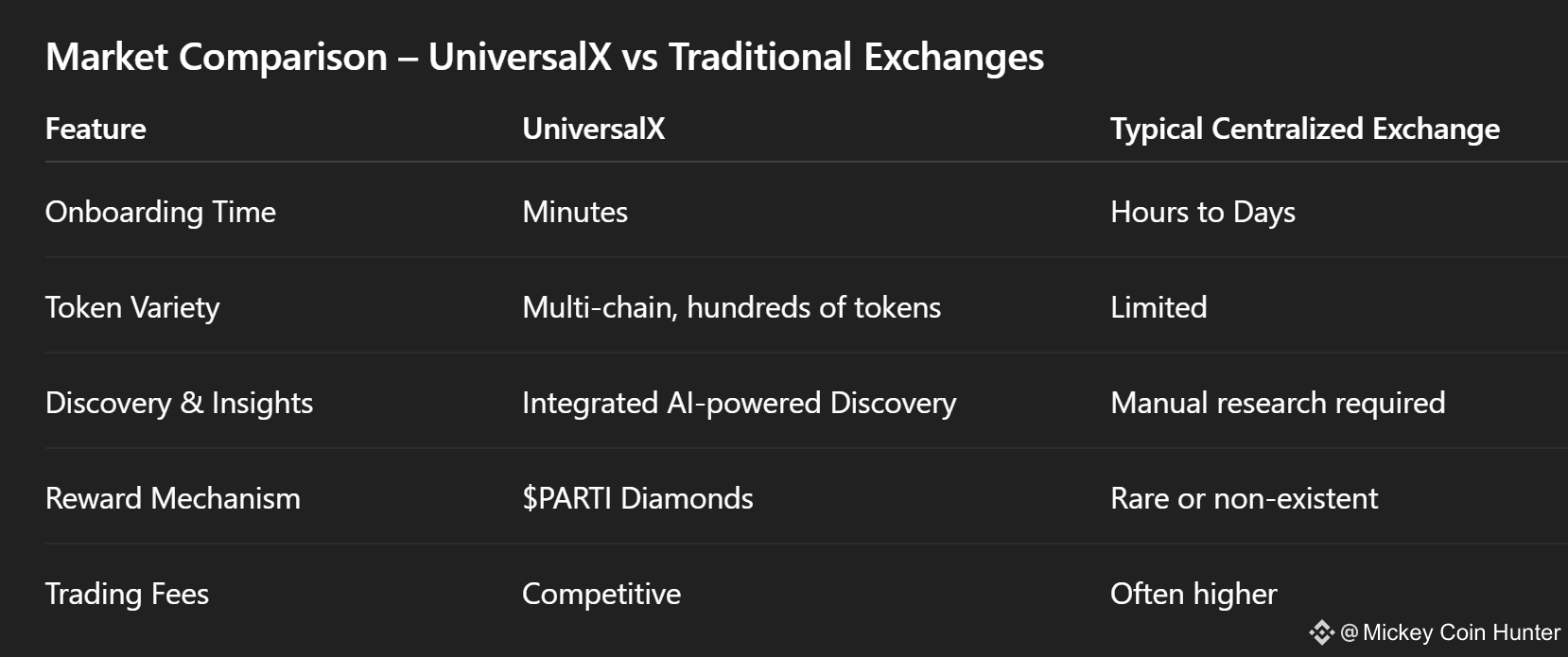 Narrative Summary: Consider Alex, a professional trader. Before UniversalX, he relied on multiple platforms and manual market scans. With UniversalX, Alex consolidates all his trading, insights, and reward tracking in one place, enabling him to focus on strategy rather than logistics. This level of efficiency demonstrates why UniversalX is becoming the preferred choice for modern traders.