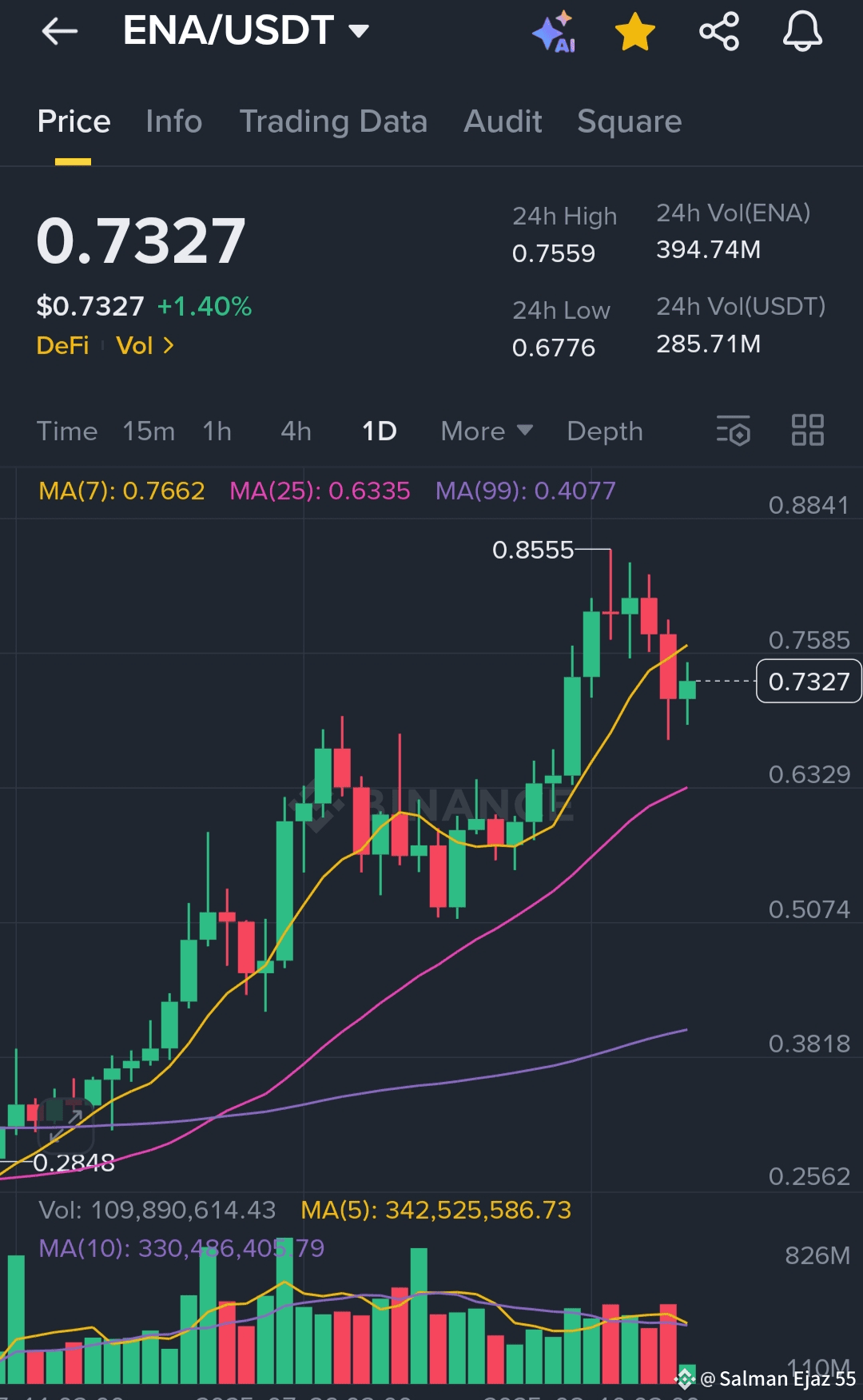 Right now, $ENA 1h chart feels heavy—like it’s taking a short breather—so I’m leaning slightly bearish in the near term. The daily chart, though, looks more neutral-to-bullish, especially since price has been holding above key support levels. If the broader market gives it a push, this momentum could carry further. Long term, I’m still bullish.