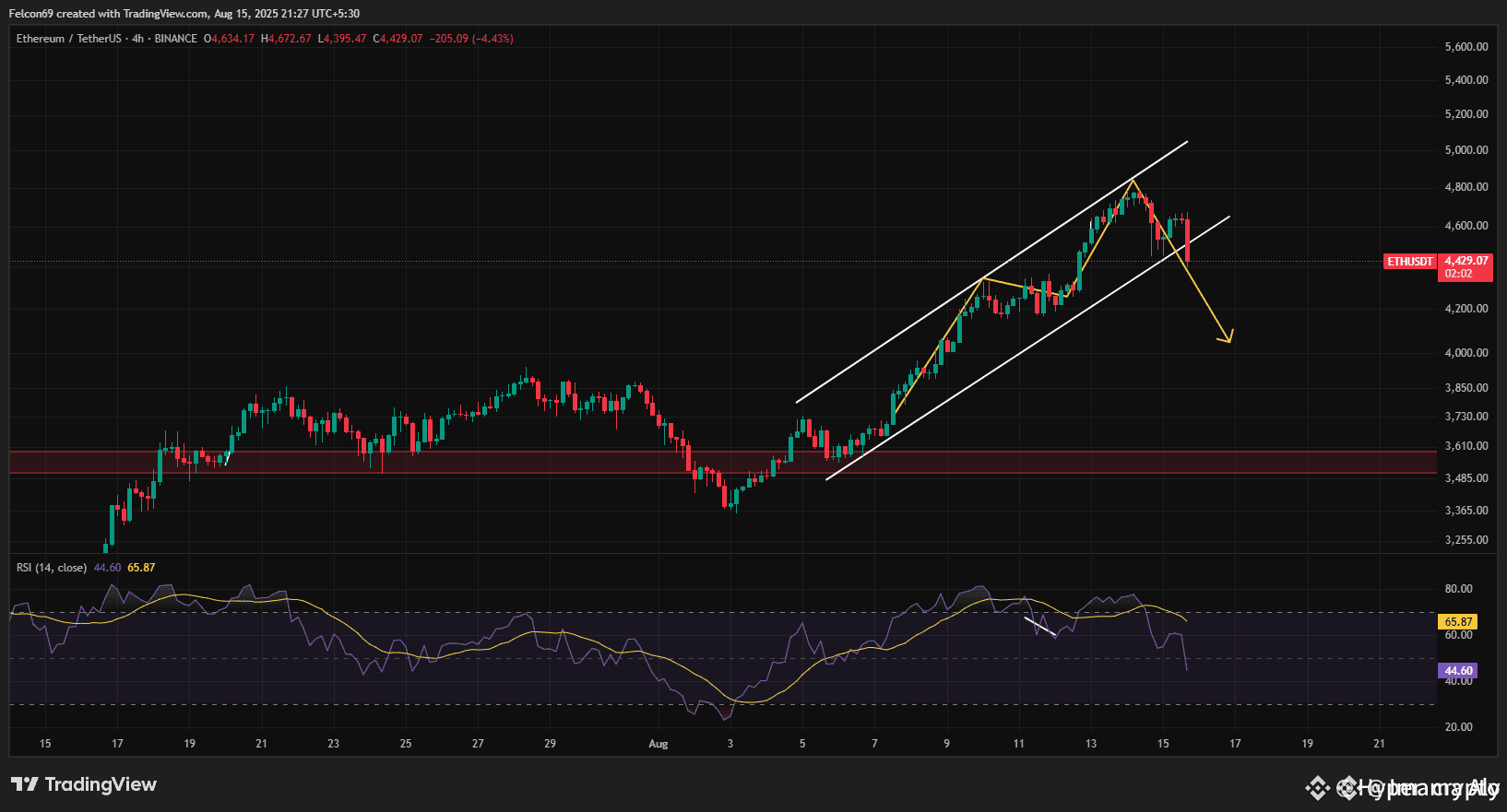 Now, ETH has broken below the lower trendline of that rising channel 🚨 — a strong technical sign that the uptrend may be losing steam.