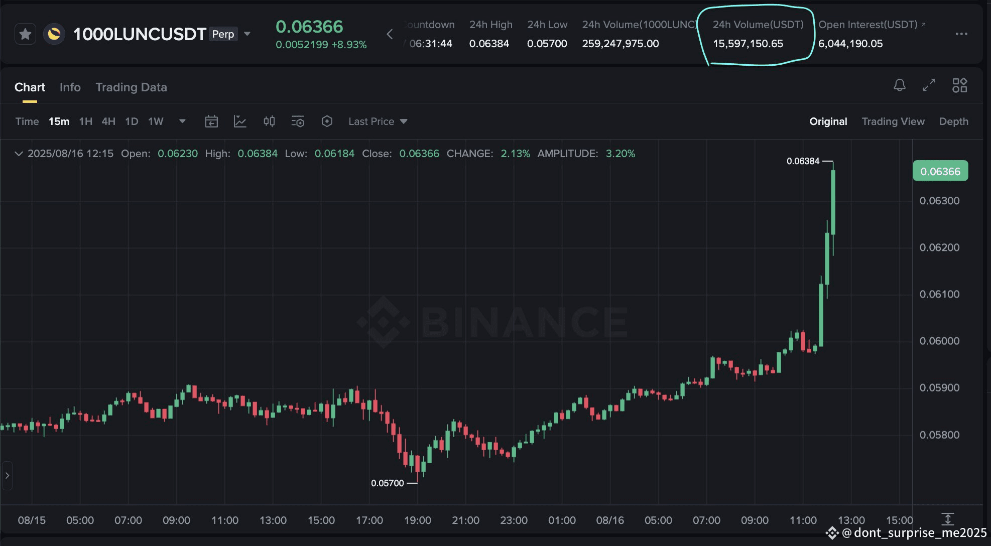 On Binance Futures, $LUNC volume has surpassed $15.5 million. Strong buying is taking place. Volume continues to grow rapidly. As volume increases, so will the price.