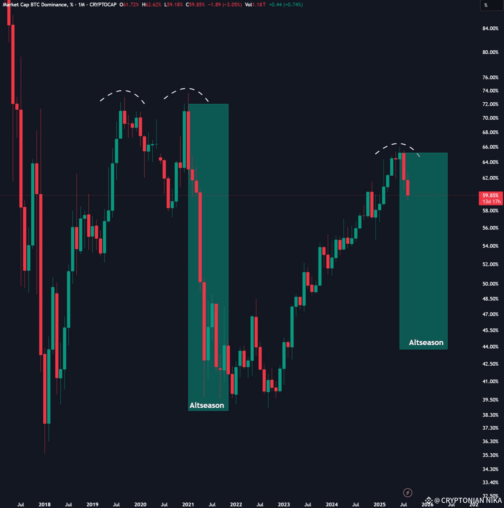 Bitcoin $BTC dominance reversal → Suggests altcoins could gain strength once BTC consolidates.