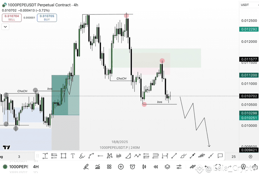 As you can see price rejected from supply and broke structure again — now trading at $0.0107.