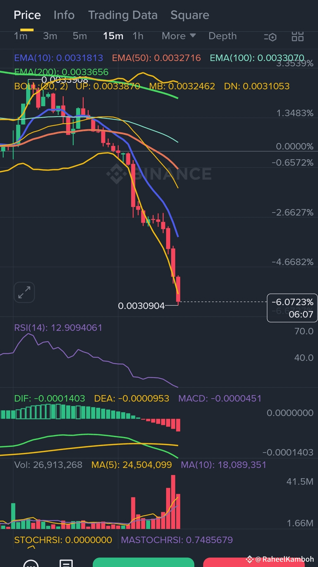 - Price CRUSHED lower band at **0.0031085** (Image 3).