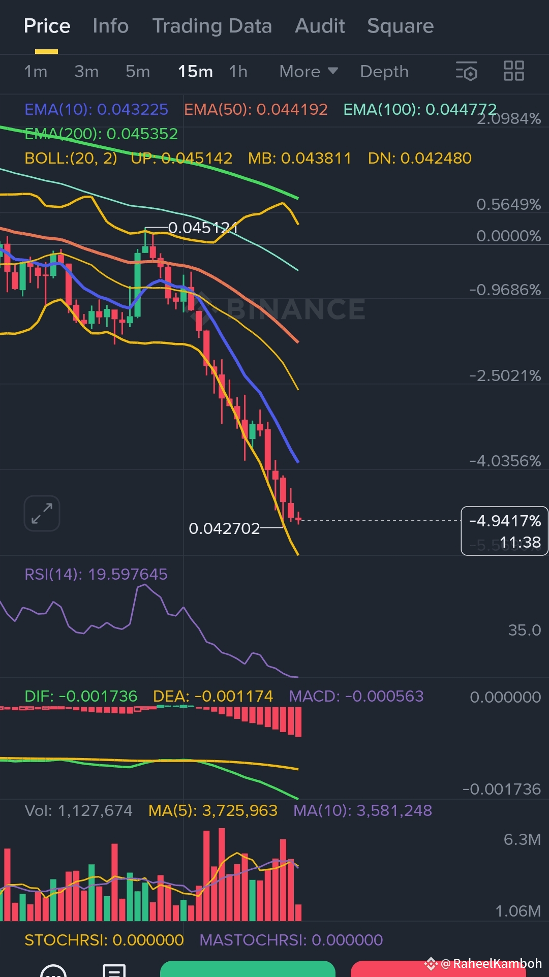 - Price **REJECTED** lower band at **0.042609** (Image #3).