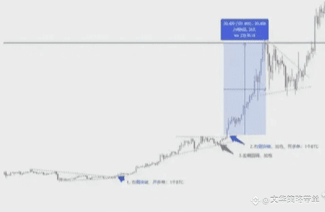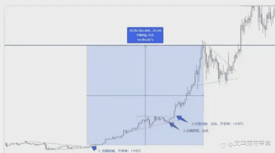1.初次入场: 在位置1,我们进行了右侧追逐,开了一个BTC多单2.加仓:在位置2,我们同样在右侧突破时加仓滚仓,再次开了一个BTC多单。