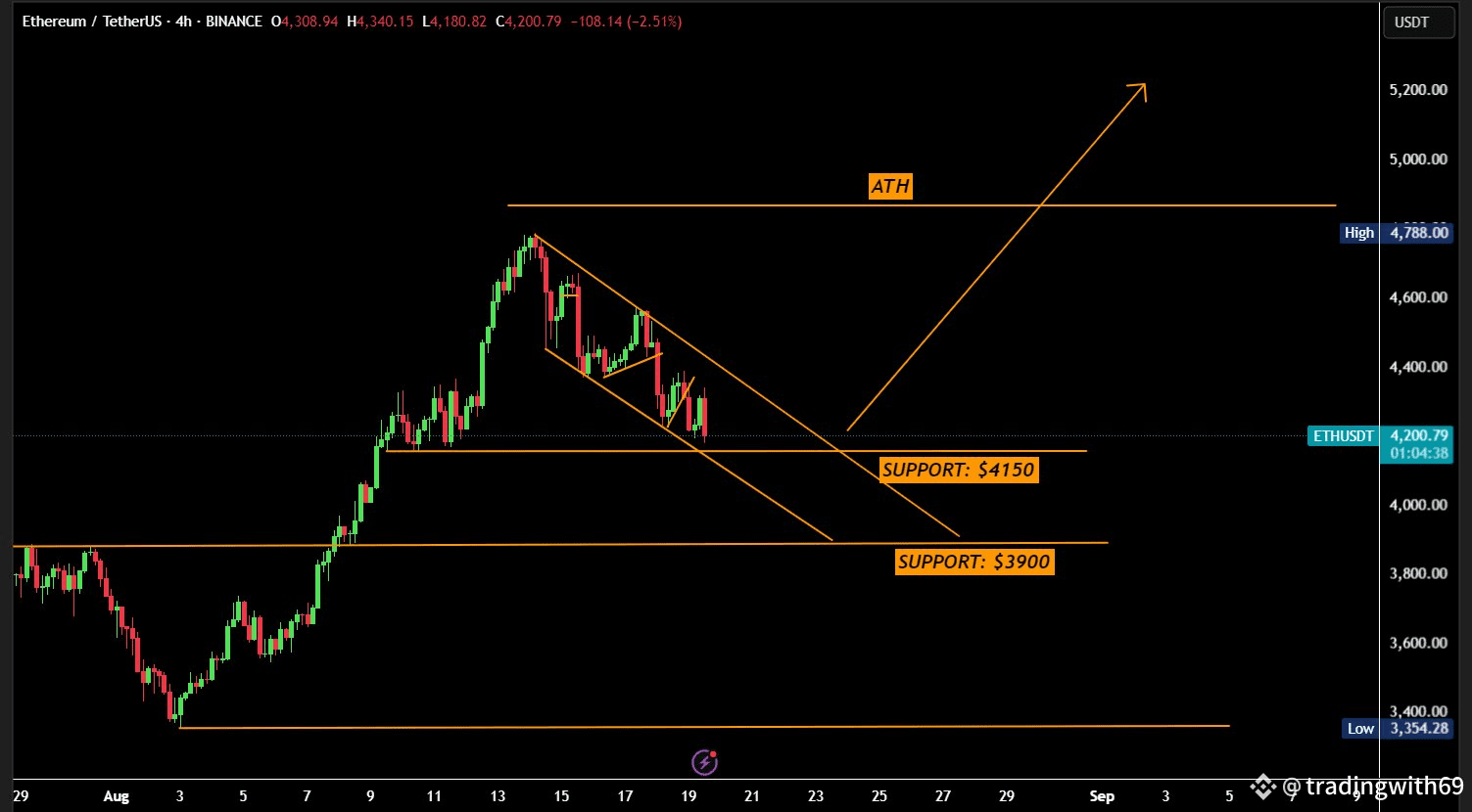 ETH is trading around $4,190, hovering near the key $4,150 support zone.