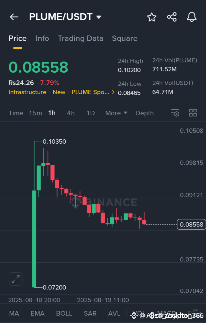 After a strong rally from $0.0720 → $0.1035, $PLUME is now showing clear weakness 😮💨