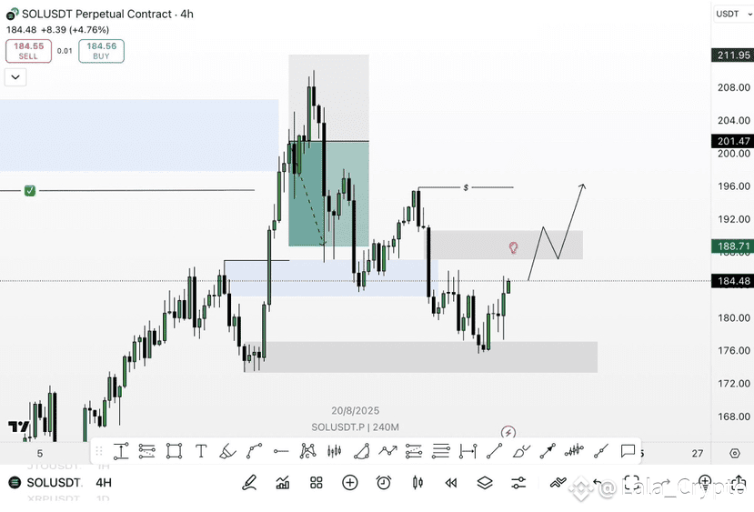As you can see Price bounced from demand and now testing supply at 188–192. Break above → eyes on 200+.