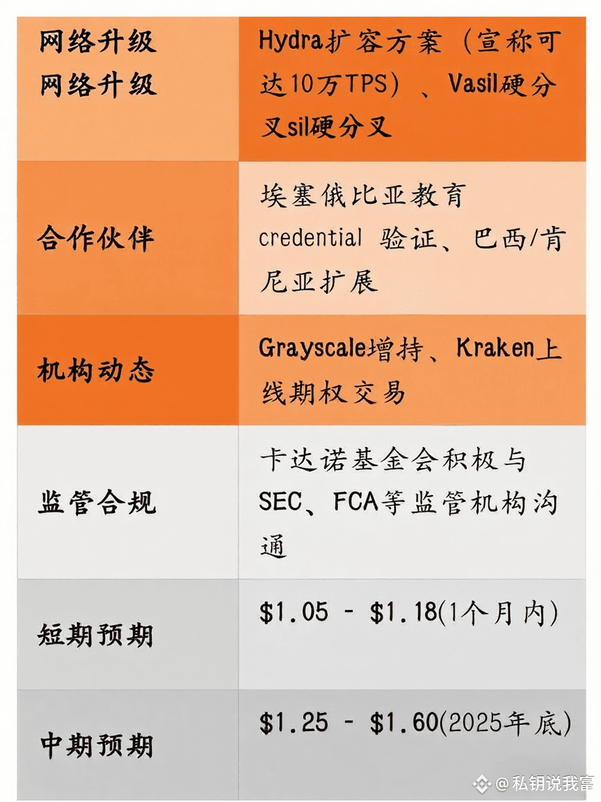 · 技术升级预期:Leios 等未来升级旨在进一步优化网络性能和智能合约能力。