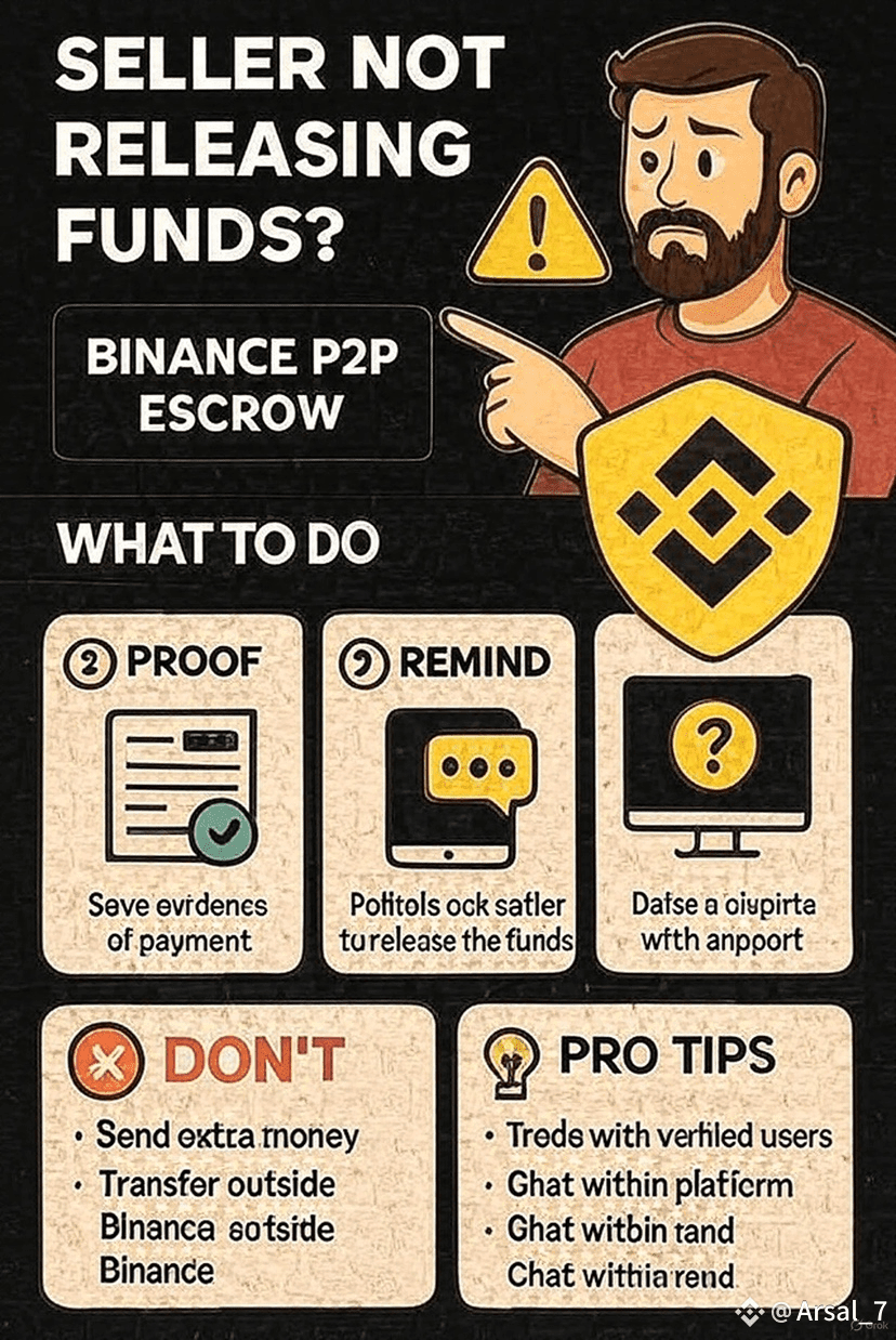 If you’ve paid and the seller doesn’t release the crypto, remember: Binance escrow is on your side. Stay calm, keep records, communicate clearly, and if necessary, escalate with a dispute. Awareness and discipline are your strongest defenses in P2P trading