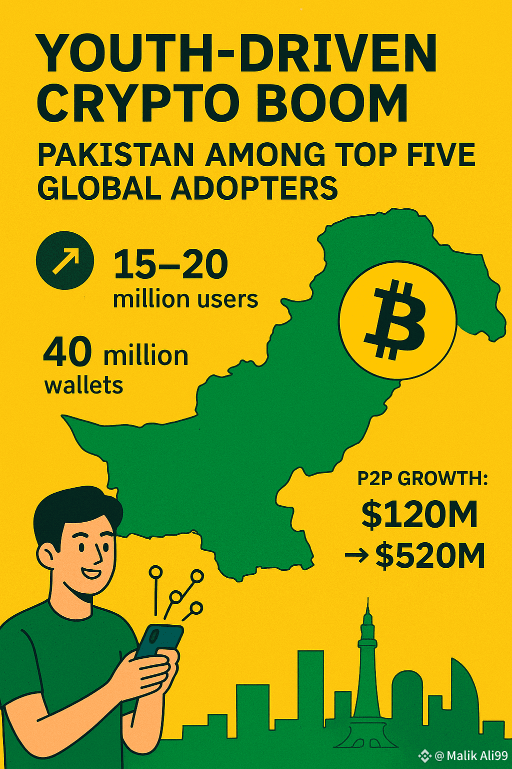 Pakistan ranks among the top five countries globally in terms of cryptocurrency adoption, fueled by a young population—70% under age 30—and 40 million crypto wallets .An estimated 15–20 million Pakistanis now own cryptocurrency, with peer-to-peer trading volume soaring from $120 million in 2019 to $520 million in 2023, and an annual trading volume of approximately $25 billion .Institutional transactions are gaining traction: nearly 69% of transaction volume now involves transfers valued at $1 million or more, reflecting growing institutional interest .The demographic advantage, rising digital literacy, economic uncertainty, and the search for higher returns are key catalysts behind this rapid adoption .
