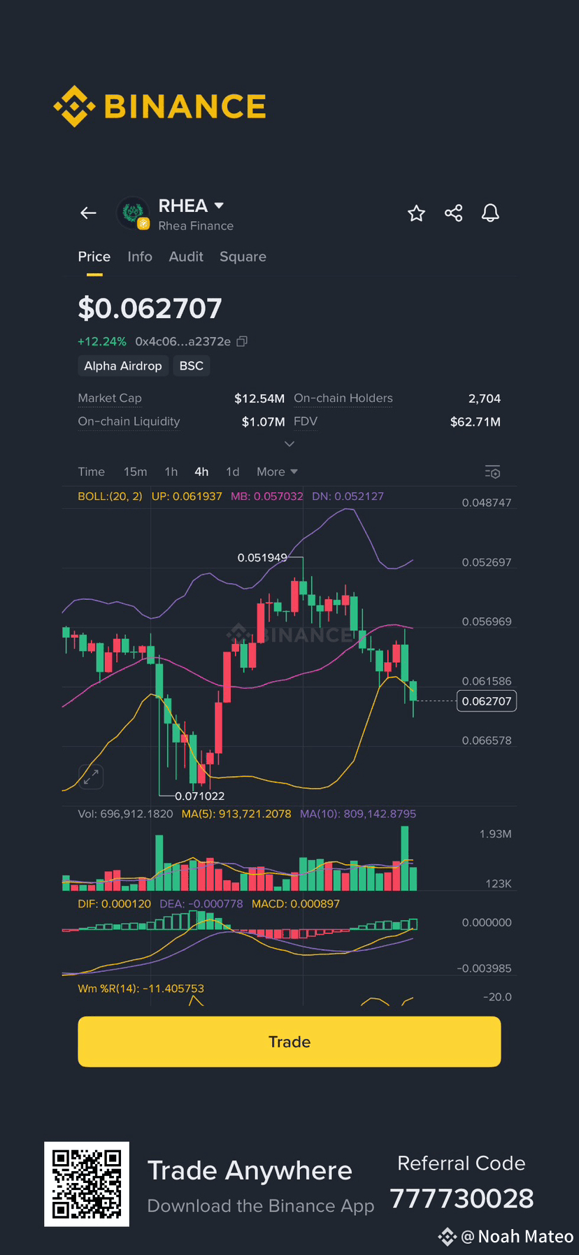 RHEA Finance ($RHEA) is quickly emerging as a project to watch in the dynamic world of decentralized finance (DeFi). The recent price action, as captured in this chart, suggests that this token is gaining significant traction and investor confidence. Currently, RHEA is trading at $0.062707, which represents a remarkable +12.24% increase. This strong performance is not a fluke but a reflection of growing interest and a solid foundation.