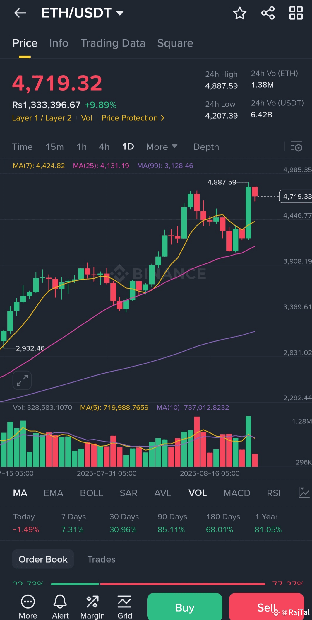 Ethereum is moving strong in the market 🔥. After rallying from $4,207 → $4,887, ETH is now holding near $4,725 (+9.55%).