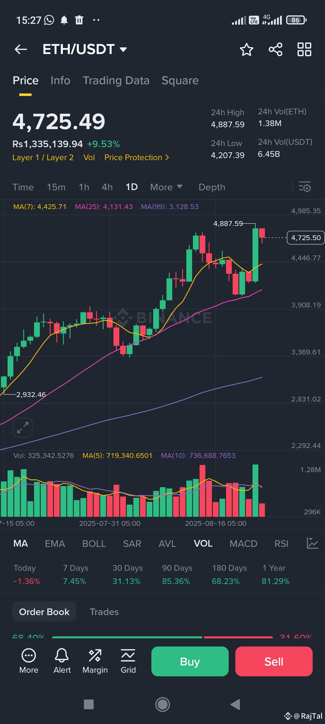 Ethereum $ETH is heating up in the market! After rallying from $4,207 → $4,887, $ETH is now holding around $4,725 (+9.55%). Traders are watching closely because this coin is showing strong momentum – and the next breakout could happen anytime.