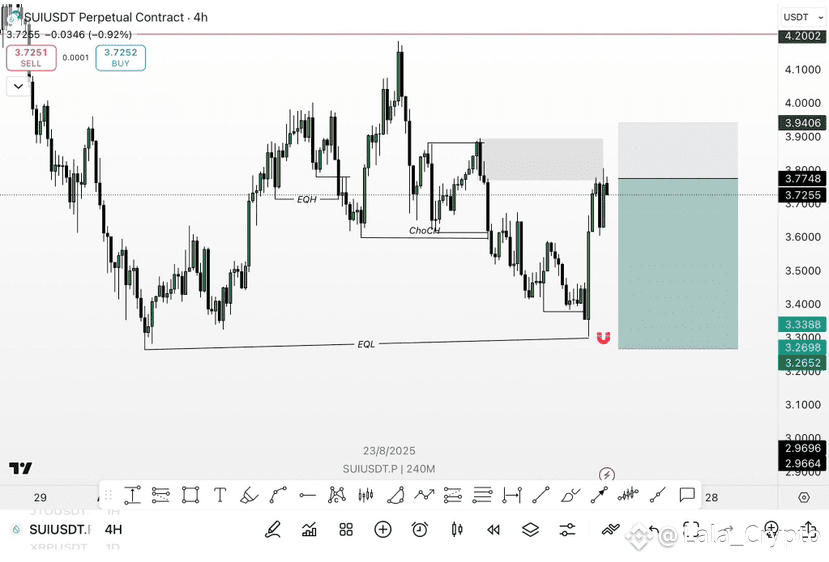Expecting rejection from 3.9 – 4.0$ zone → potential continuation down towards 3.3$.