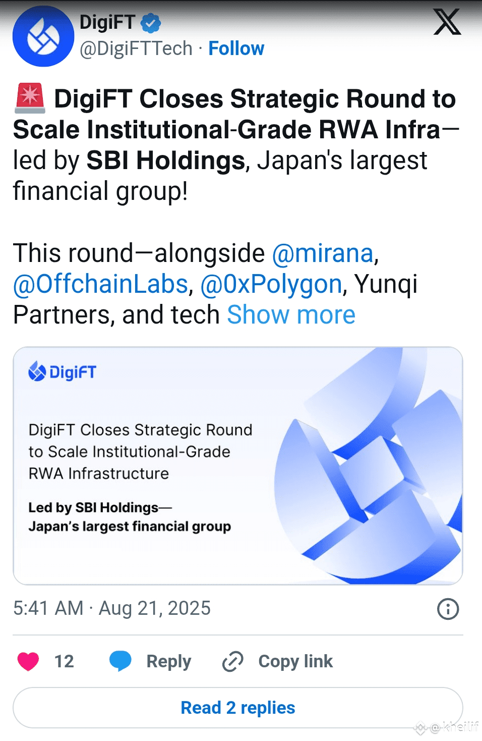 Singapore-based DigiFT, a regulated exchange for tokenized real-world assets (RWAs), has raised $11 million** in a strategic round led by Japan’s **SBI Holdings**, with participation from **Mirana Ventures**, **Offchain Labs**, **Polygon Labs**, and others. This brings their total funding to **$25 million, accelerating their mission to merge institutional finance with on-chain ecosystems.