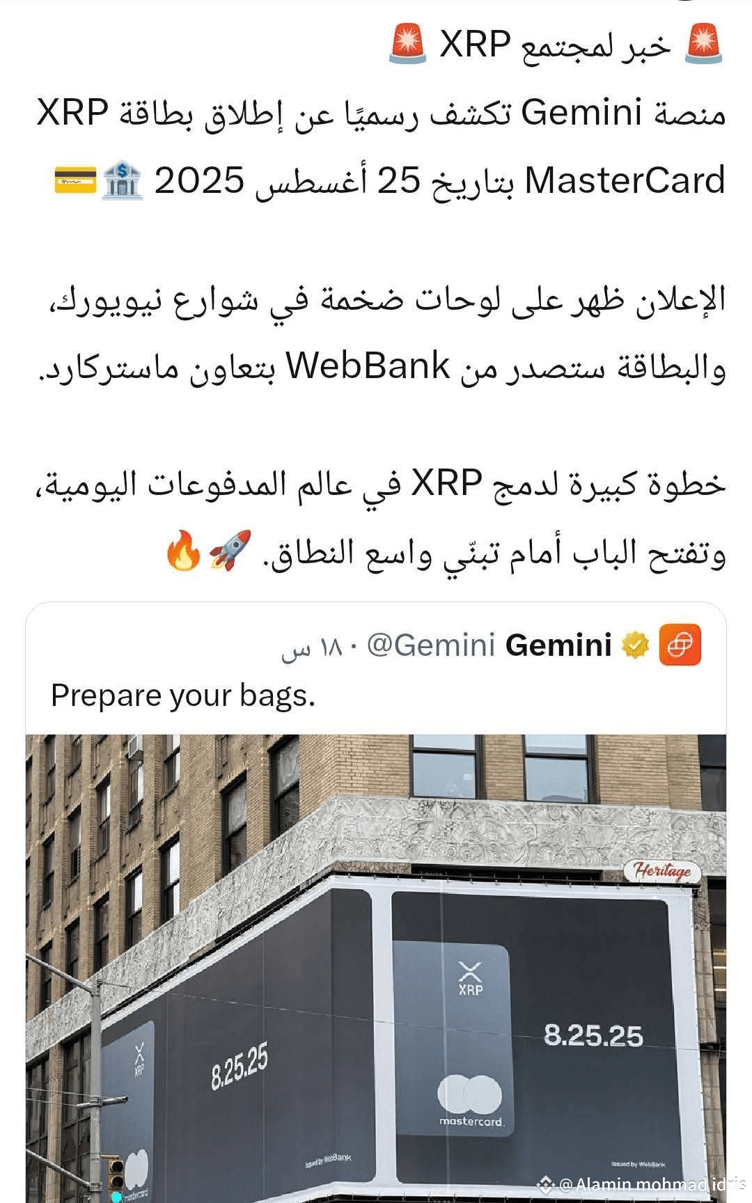 أهلاً بك. الخبر الذي تتحدث عنه عن إطلاق منصة Gemini بطاقة ماستركارد خاصة بعملة XRP في نيويورك بتاريخ 25 أغسطس 2025، هو خبر مُثير للاهتمام ويُشير إلى تحول محتمل في مجال العملات المشفرة. دعنا نتعمق في تفاصيل هذا الموضوع ونحلل أبعاده.