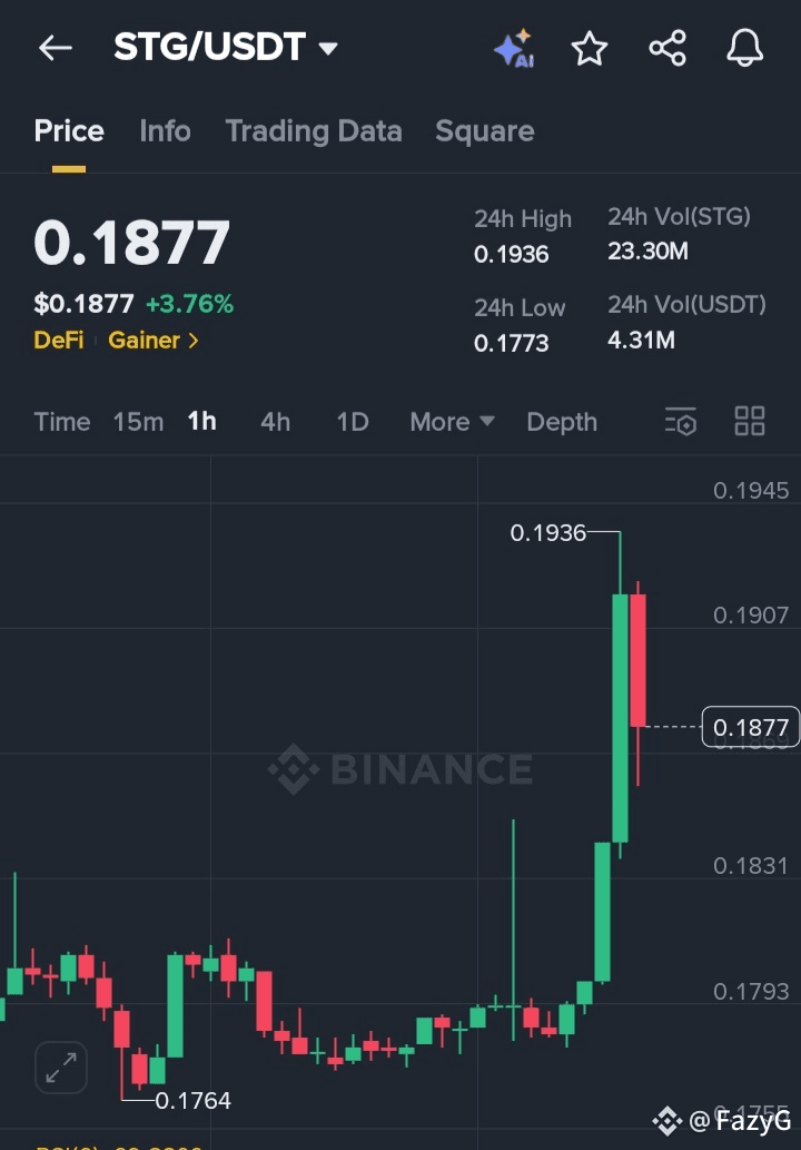 $STG is forming higher lows with increasing bullish candles. If buyers hold the $0.1780 zone, momentum could extend toward $0.1900+, potentially opening a mid-term rally.