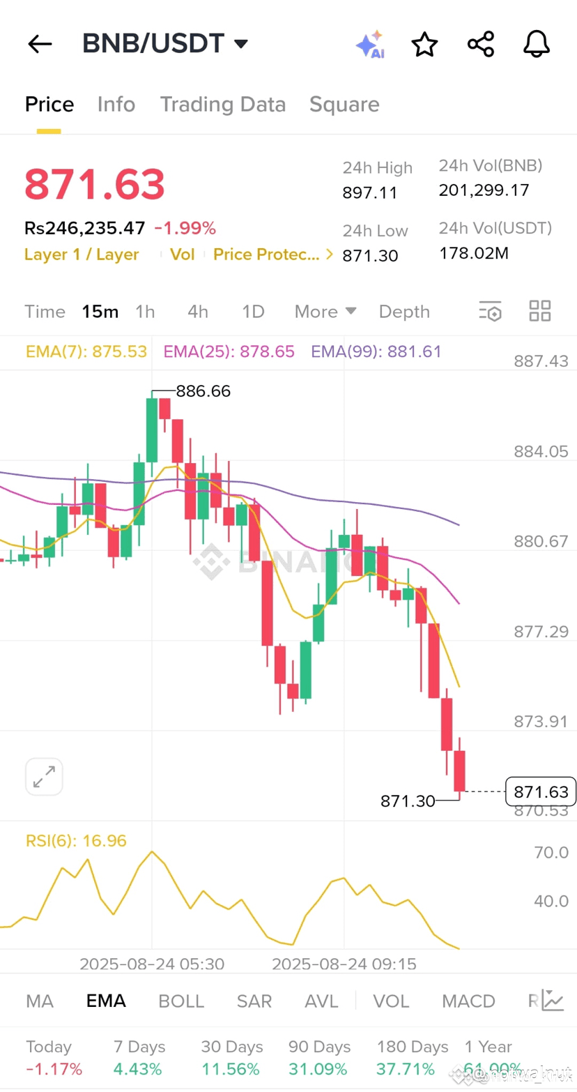 Despite a slight dip to 880.38 (-0.49%), buyers are actively defending the 875 support zone. Accumulation on every dip suggests bulls are preparing for a breakout move. 💪