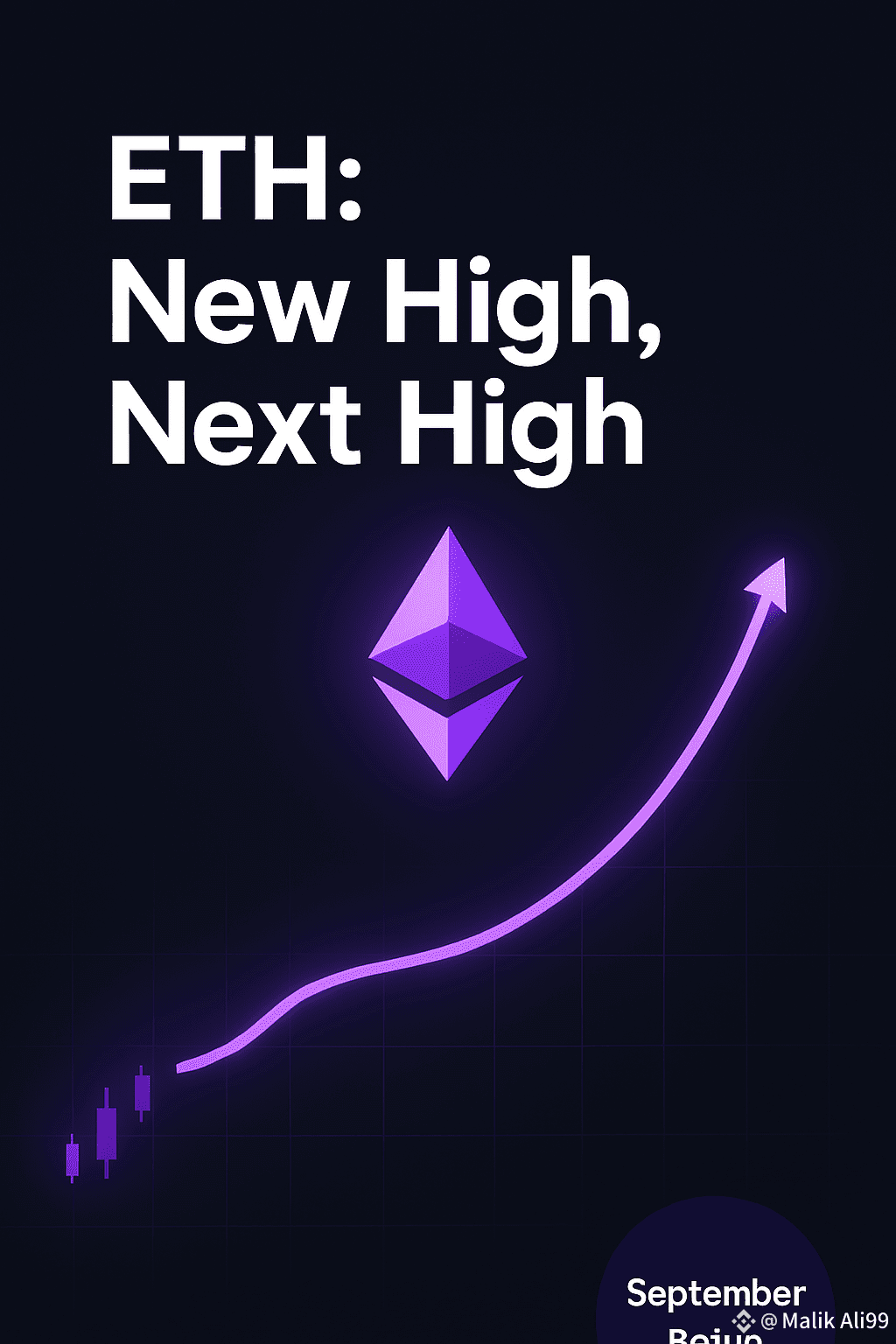 Bottom line: ETH just unlocked “new-high energy.” With ETFs funneling steady demand and the chain’s real usage story intact, the probability-weighted path into September skews up, even if volatility is part of the ride. ETH: New High, Next High. #EarnFreeCrypto2024 #EarnByWriting #Write2Earn #write2earn🌐💹 #AltcoinBreakout $ETH