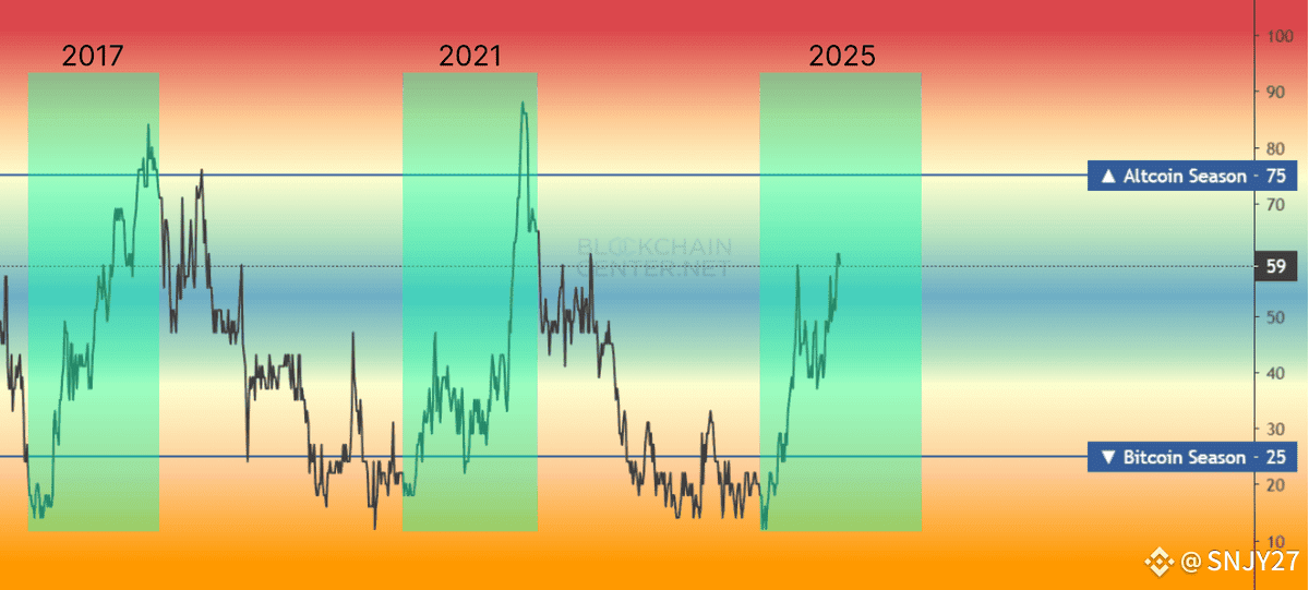 𒀭 1. Altseason Index has risen to 59 and this is a key signal that in previous cycles triggered the strongest altcoin moves